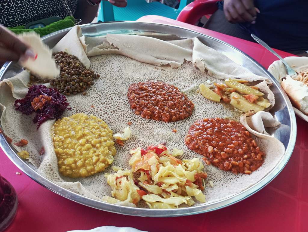 With 8 days ahead of us, we had already signed up for this and we were going to do it no matter what. After a successful crossover, we kicked off real tourism by settling in a kibandaski tasting native food and some Ethiopian beer. I ordered anjera like the tourist I am, it came with some vegetables and cereals only since they were performing some kind of fast where they don’t partake in meat. Im not gonna lie, it kinda tasted nice. I had some pasta too and thought to myself, “huh! this is interesting!!”